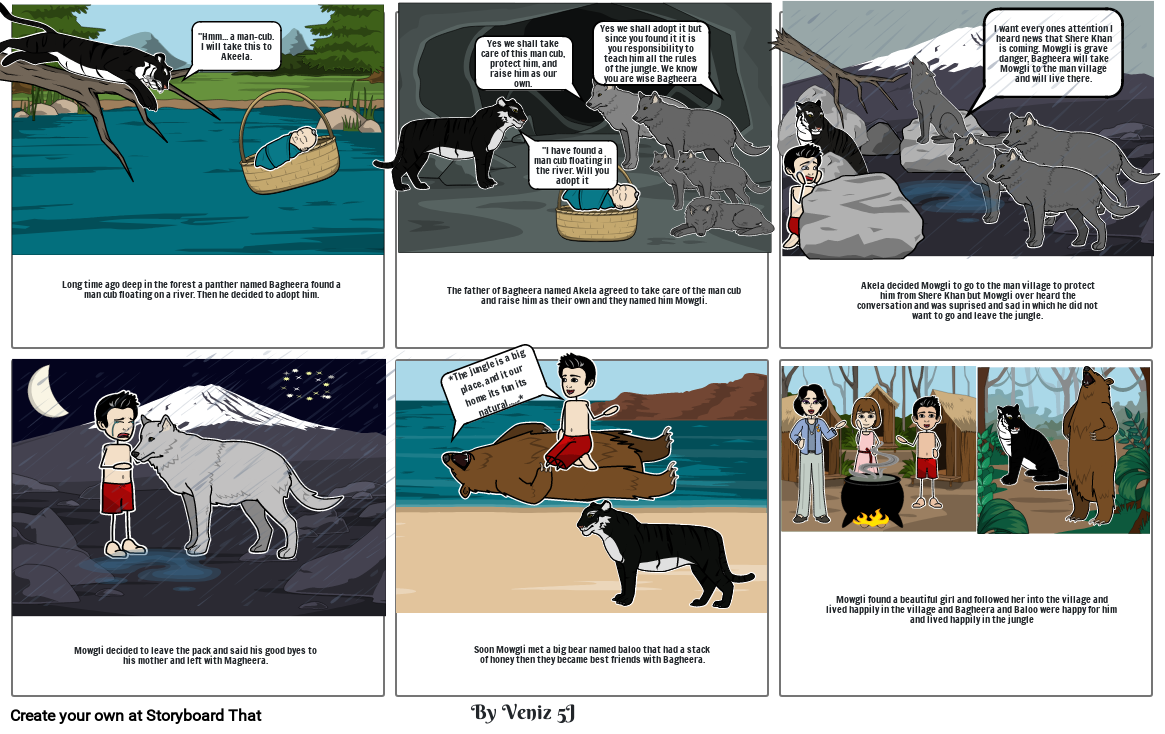 Long time ago deep in the forest a panther named Bagheera found a man cub floating on a river. Then he decided to adopt him.