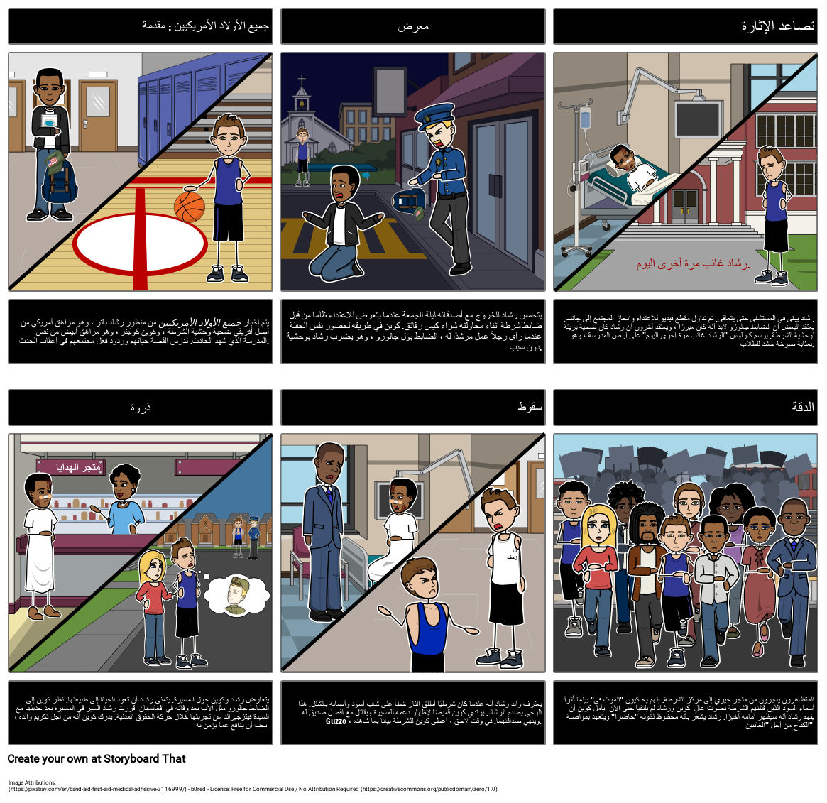 رشاد يبقى في المستشفى حتى يتعافى. تم تداول مقطع فيديو للاعتداء وانحاز المجتمع إلى جانب. يعتقد البعض أن الضابط جالوزو لابد أنه كان مبررًا ، ويعتقد آخرون أن رشاد كان ضحية بريئة لوحشية الشرطة. يرسم كارلوس "الرشاد غائب مرة أخرى اليوم" على أرض المدرسة ، وهو بمثابة صرخة حشد للطلاب.