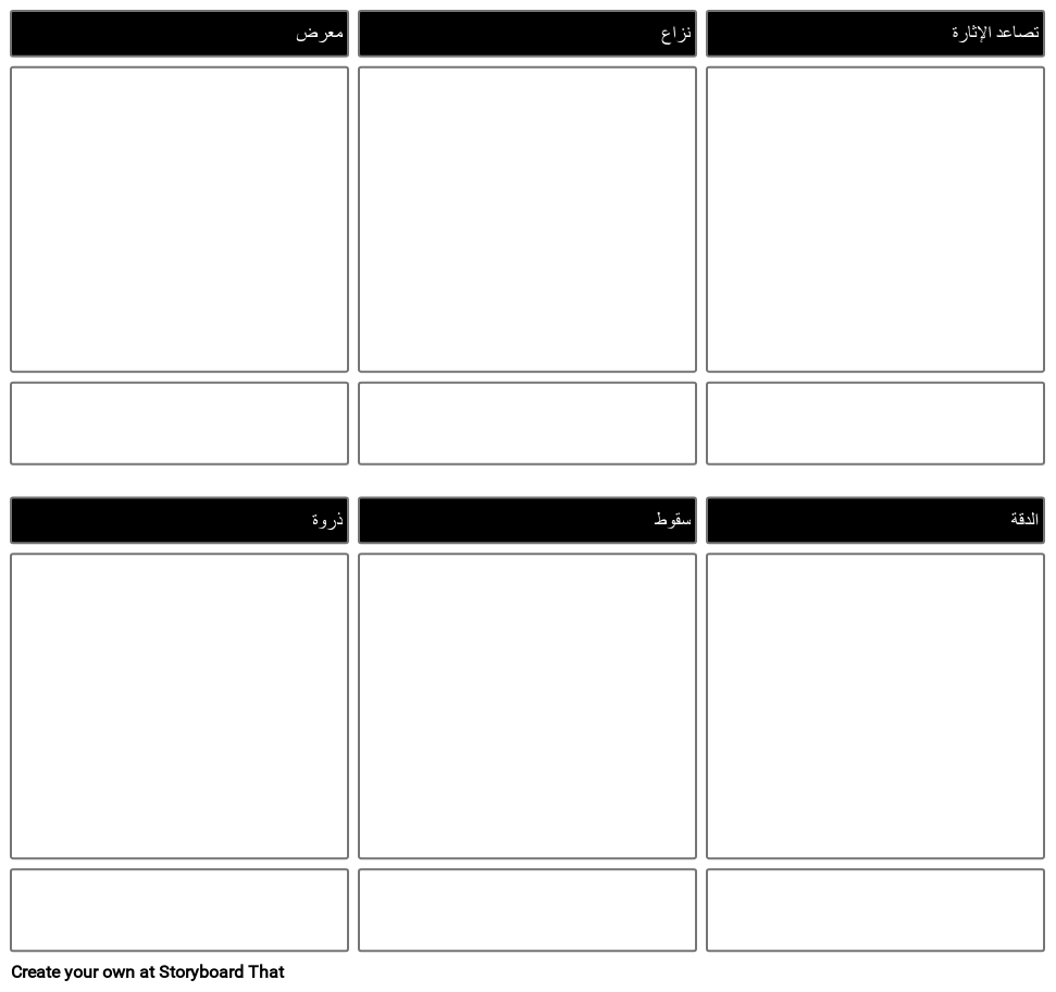 قالب مخطط الرسم البياني بما في ذلك: المعرض ، الصراع ، العمل الصاعد ، الذروة ، السقوط ، القرار