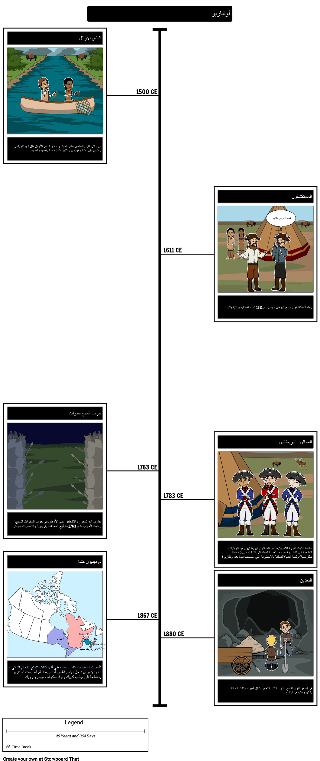 قم بإنشاء جدول زمني لتاريخ أونتاريو ، أو تاريخ مقاطعة كندية أخرى.