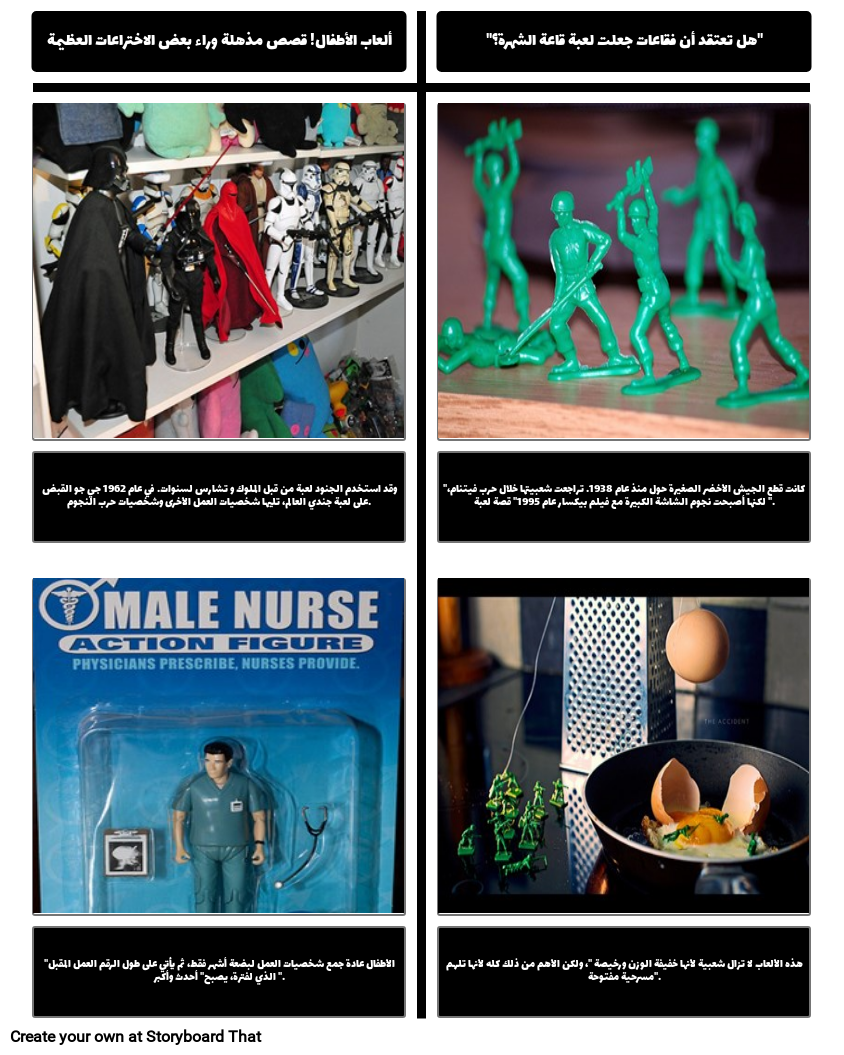 "كانت قطع الجيش الأخضر الصغيرة حول منذ عام 1938. تراجعت شعبيتها خلال حرب فيتنام، لكنها أصبحت نجوم الشاشة الكبيرة مع فيلم بيكسار عام 1995" قصة لعبة ".