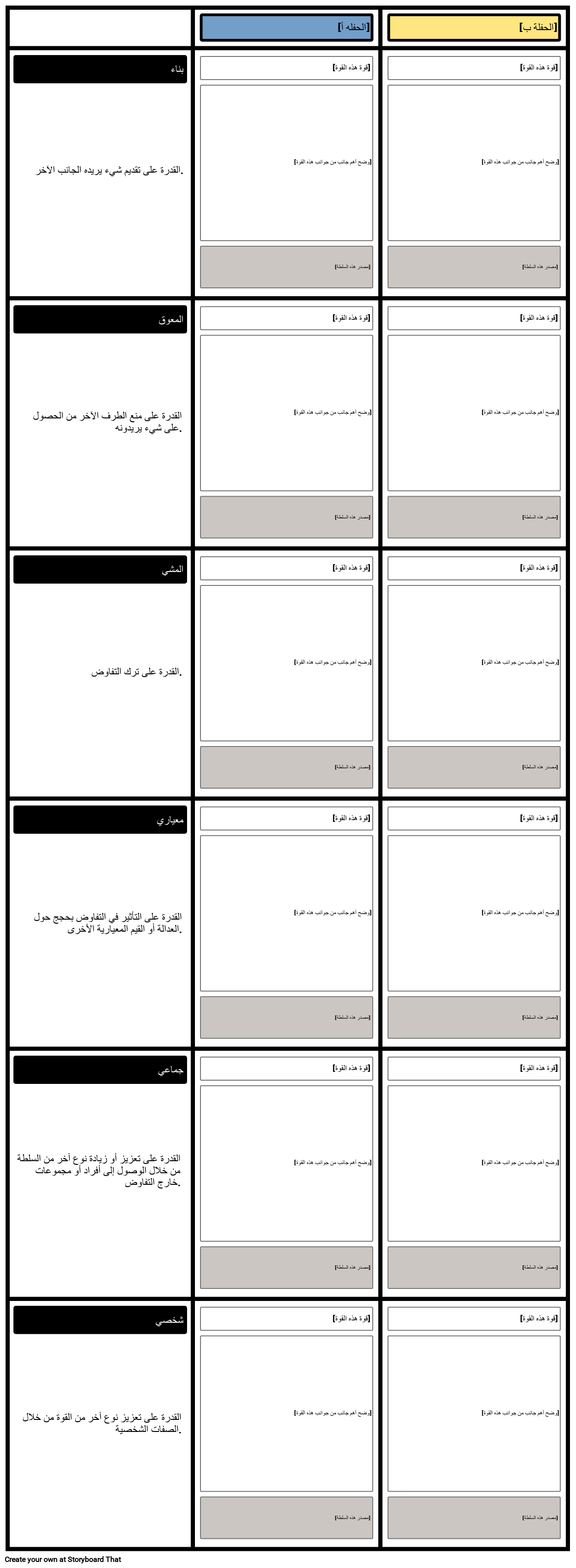 قالب لإجراء تحليل قوة لطرفين متفاوضين