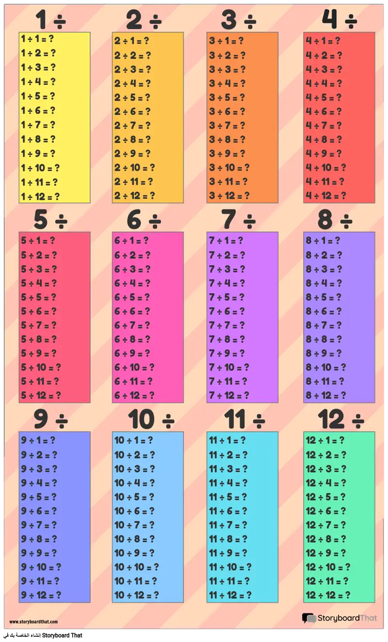 قالب جدول القسمة