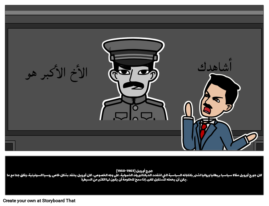 جورج أورويل (1903-1950)كان جورج أورويل مقالا سياسيا بريطانيا وروائيا اشتهر بكتاباته السياسية التي انتقدت الديكتاتوريات الشمولية. على وجه الخصوص، كان أورويل ينتقد بشكل خاص روسيا السوفيتية، وقلق جدا مع ما يمكن أن يحمله المستقبل للغرب إذا سمح للحكومة أن يكون لها الكثير من السيطرة.
