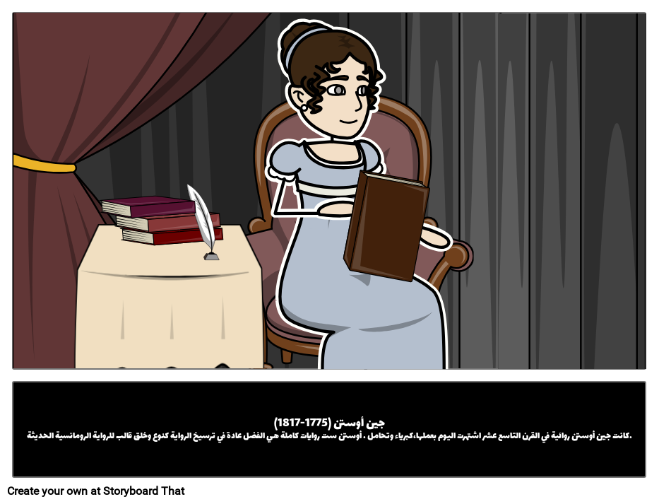 جين أوستن (1775-1817) كانت جين أوستن روائية في القرن التاسع عشر اشتهرت اليوم بعملها،كبرياء وتحامل . أوستن ست روايات كاملة هي الفضل عادة في ترسيخ الرواية كنوع وخلق قالب للرواية الرومانسية الحديثة.