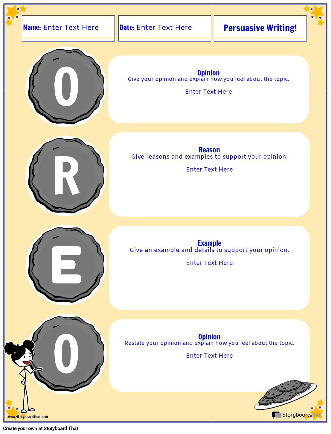 Убедителен шаблон за дигитален работен лист. Акроним и тема на OREO.