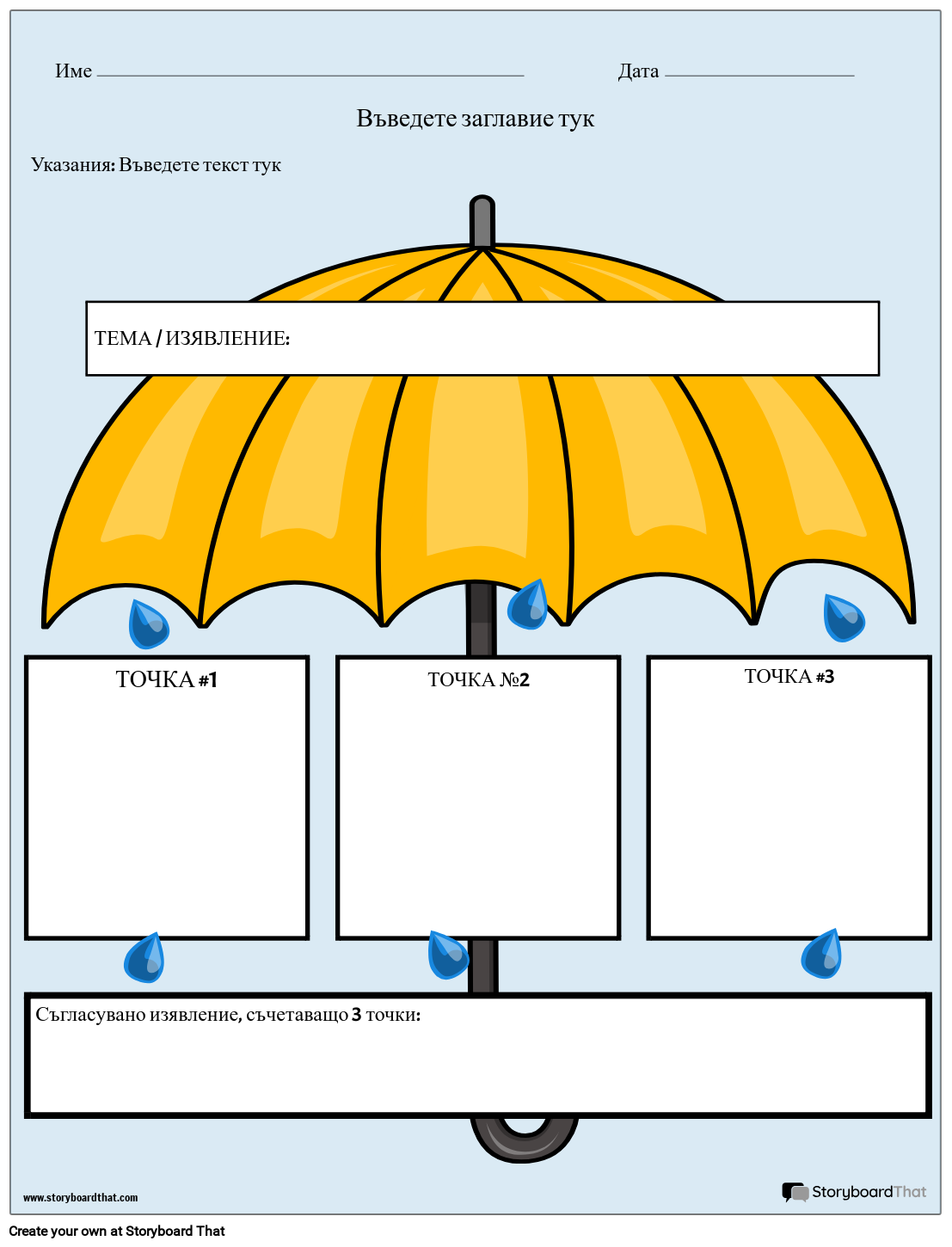 Графичен организатор на изявление за дипломна работа за всяка тема! Тема чадър, портретно оформление и в цвят.