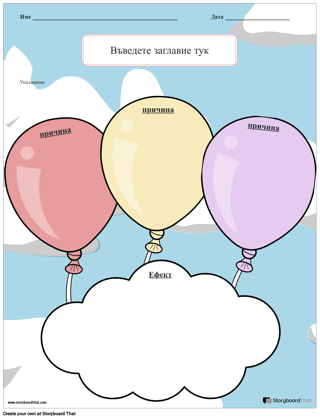 Шаблони на работни листове за причина и следствие: Разграждане на ефектите от нещо