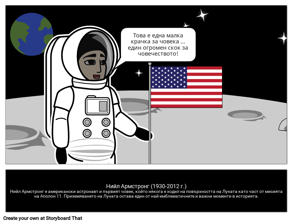 Нийл Армстронг (1930-2012 г.)Нийл Армстронг е американски астронавт и първият човек, който някога е ходил на повърхността на Луната като част от мисията на Аполон 11. Приземяването на Луната остава един от най-емблематичните и важни моменти в историята.