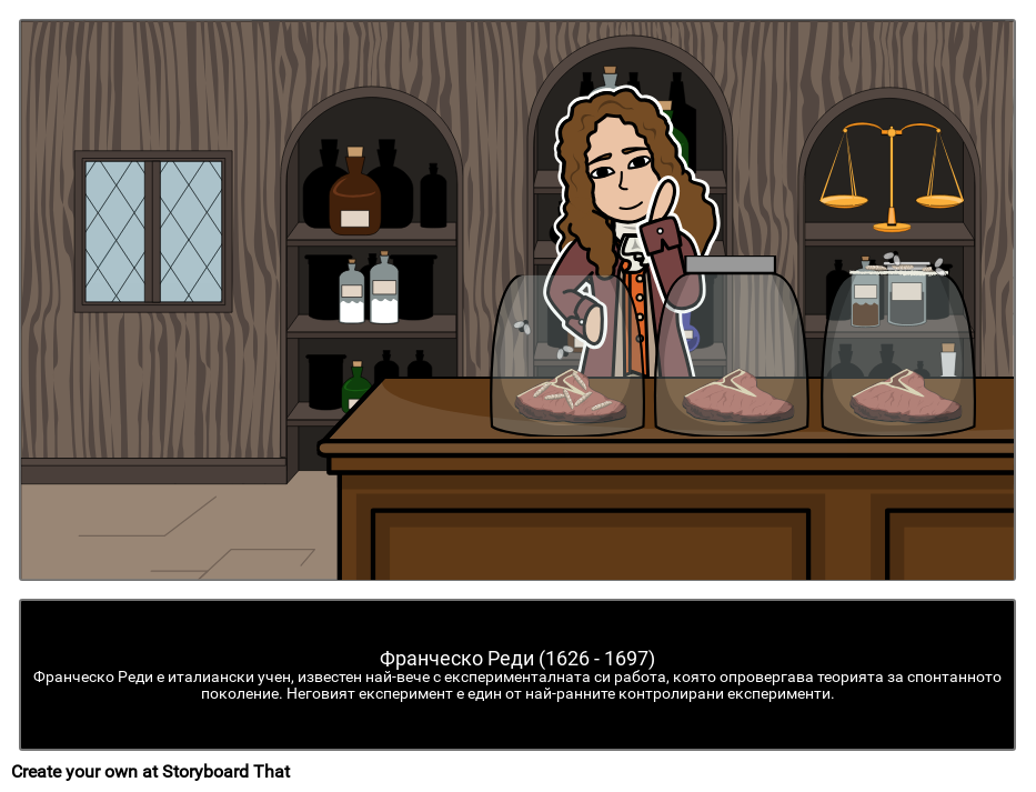 Франческо Реди (1626 - 1697)Франческо Реди е италиански учен, известен най-вече с експерименталната си работа, която опровергава теорията за спонтанното поколение. Неговият експеримент е един от най-ранните контролирани експерименти.