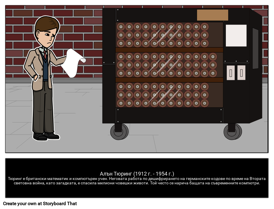 Алън Тюринг (1912 г. - 1954 г.)Тюринг е британски математик и компютърен учен. Неговата работа по дешифрирането на германските кодове по време на Втората световна война, като загадката, е спасила милиони човешки животи. Той често се нарича бащата на съвременните компютри.