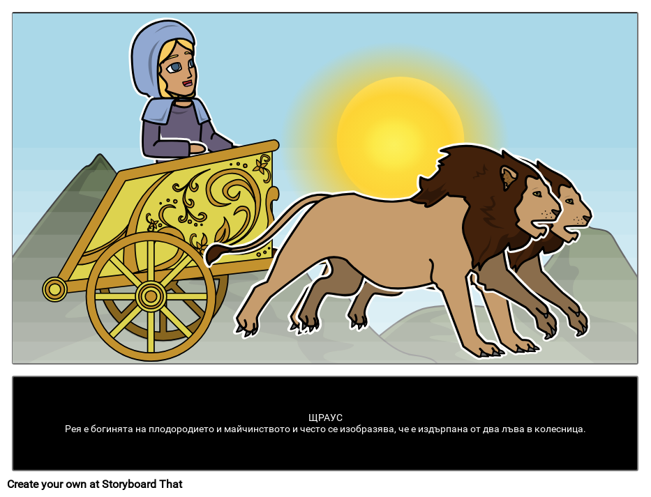 ЩРАУСРея е богинята на плодородието и майчинството и често се изобразява, че е издърпана от два лъва в колесница.