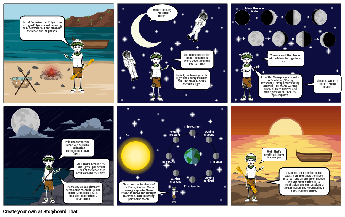 Hello! I'm an Ancient Polynesian living in Polynesia and i'm going to teach you about the all about the Moon and its phases.