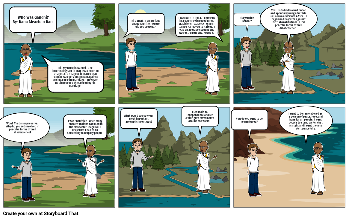 Hi.#160; My name is Gandhi.#160; One interesting fact is that I was married at age 13.#160; On page 8, it states that Gandhi was very outspoken against the idea of child marriage.#160; However, he did love his wife and enjoy his marriage.#160;
