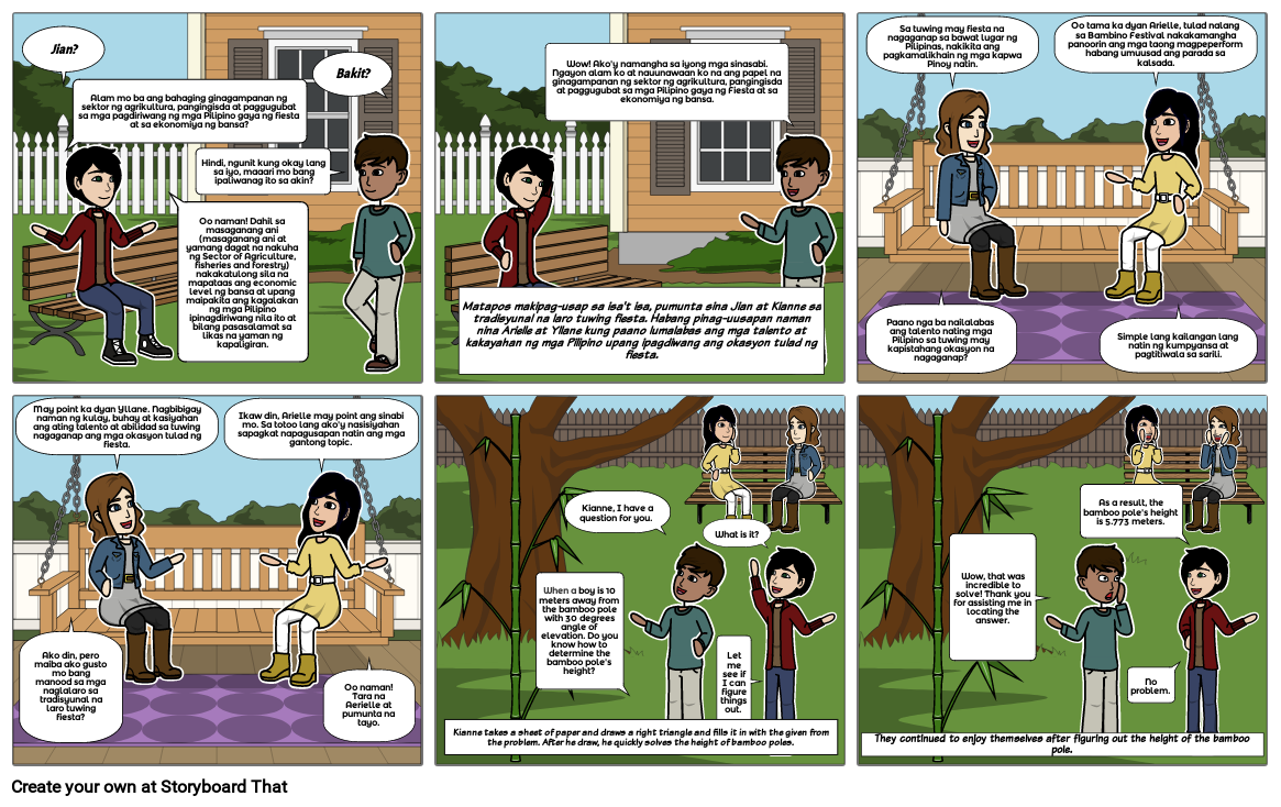 Matapos makipag-usap sa isa't isa, pumunta sina Jian at Kianne sa tradisyunal na laro tuwing fiesta. Habang pinag-uusapan naman nina Arielle at Yllane kung paano lumalabas ang mga talento at kakayahan ng mga Pilipino upang ipagdiwang ang okasyon tulad ng fiesta.