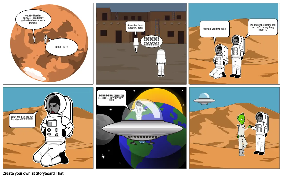 Two astronauts fight to see who gets to find the Martian's first.