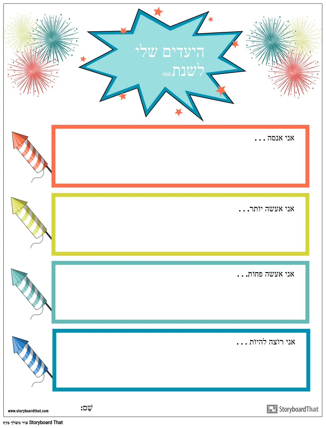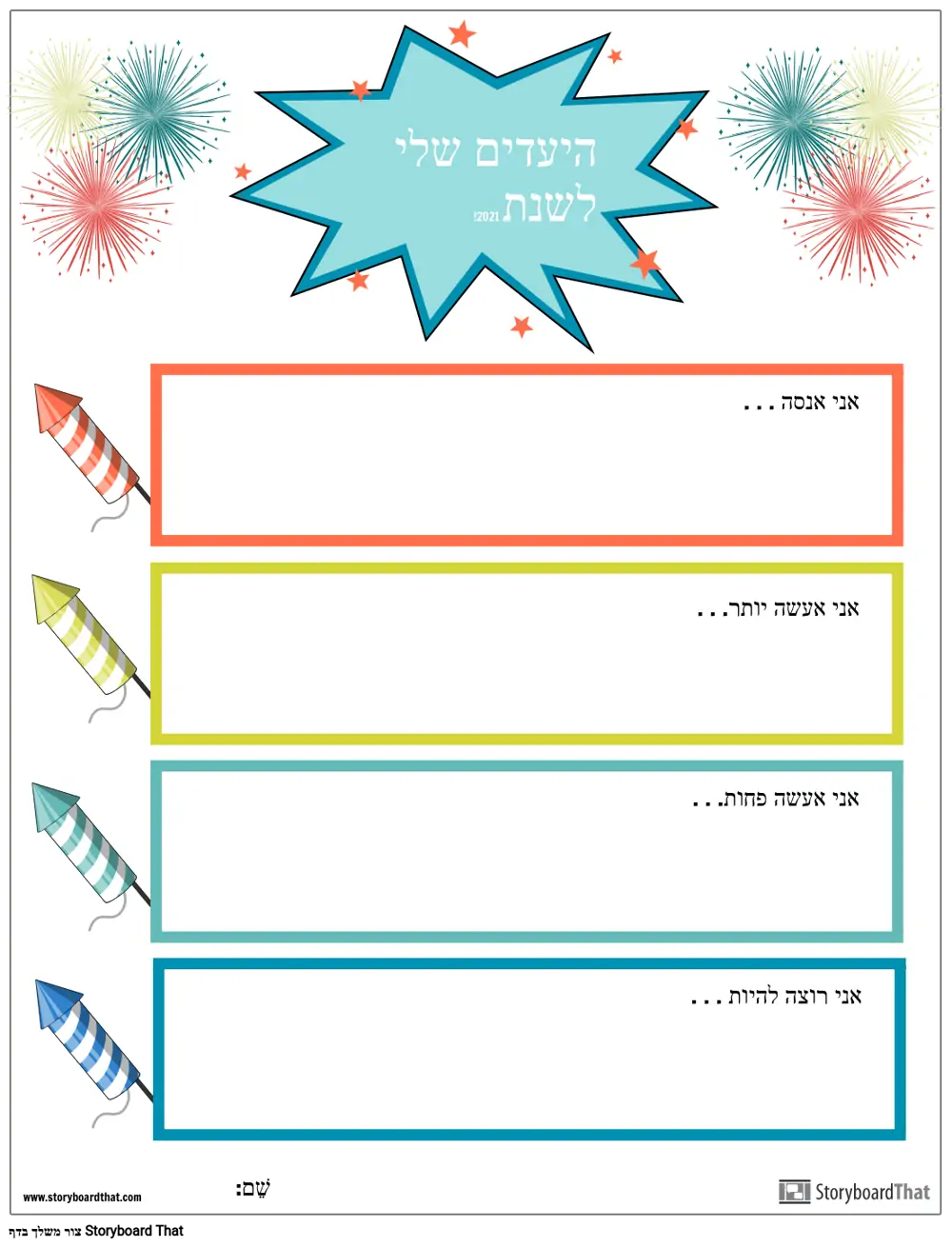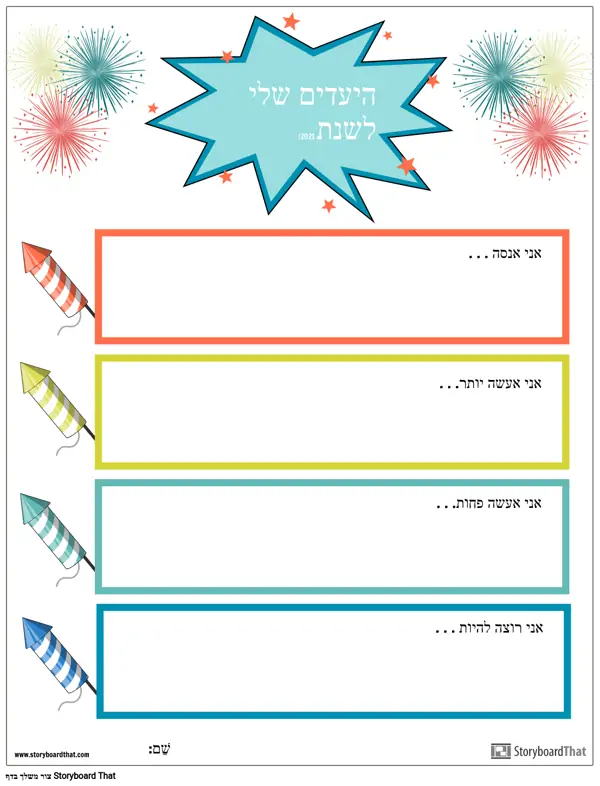 תבנית, מטרות השנה החדשה, זיקוקים