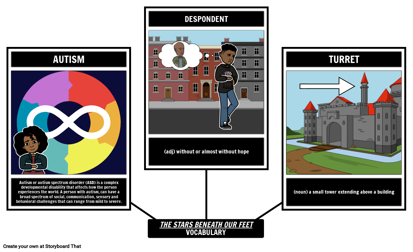בקשו מהתלמידים להגדיר ולאייר אוצר מילים מתוך הכוכבים מתחת לרגלינו מאת דייוויד ברקלי מור בעזרת מפת עכביש!