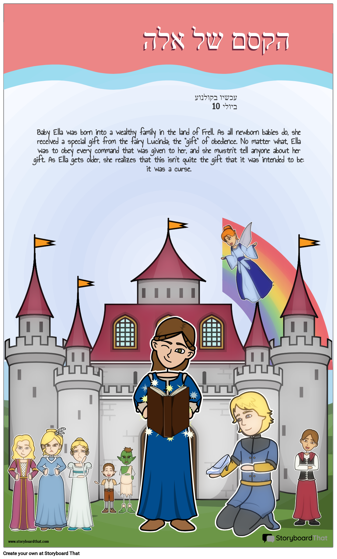 התלמידים יכולים ליצור פוסטר סרטים לספר Ella Enchanted מאת Gail Carson Levine, תוך הדגשת דמויות מפתח, הגדרות ועוד!