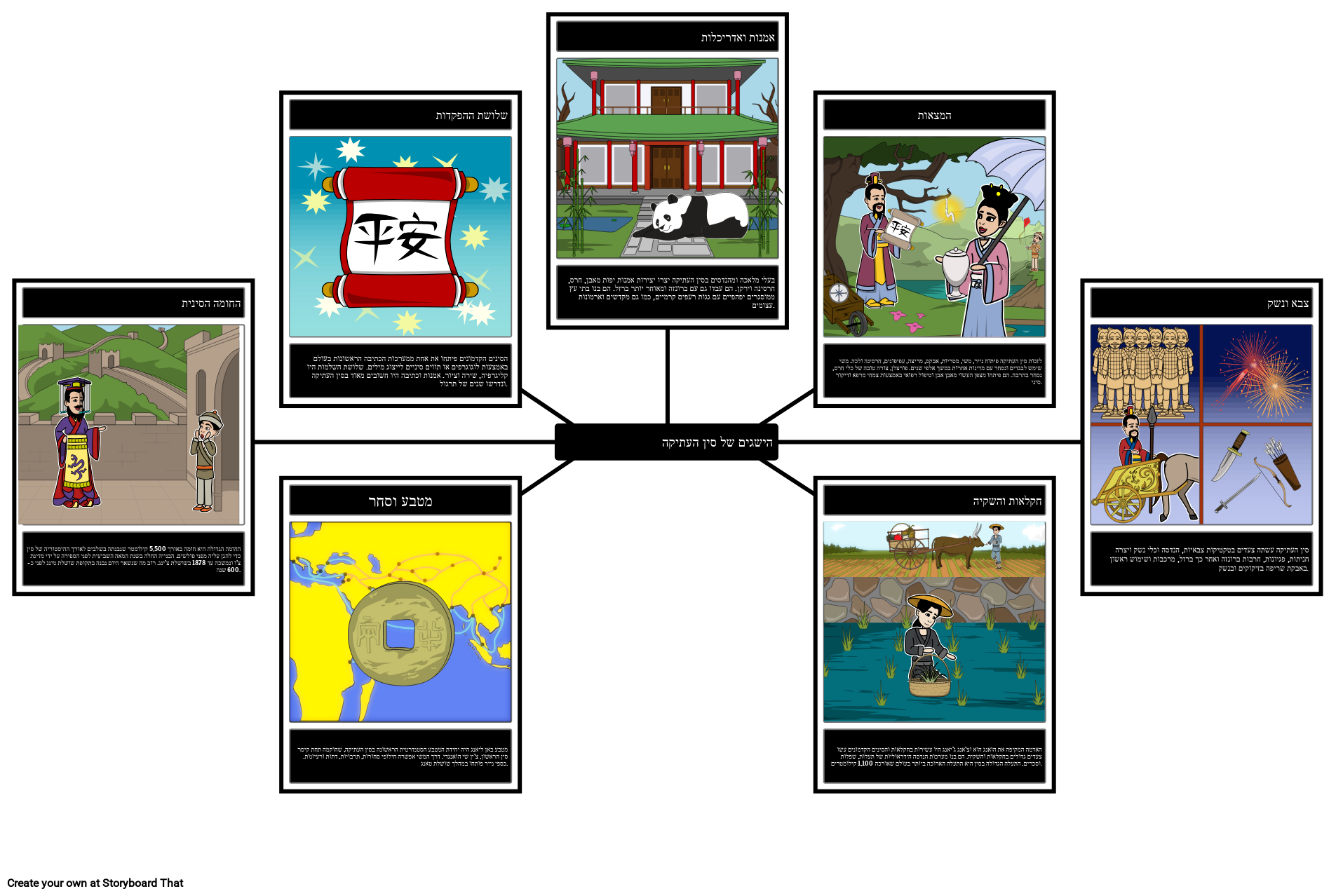 ענבים: גיאוגרפיה, דת, הישגים, פוליטיקה, כלכלה וחיים חברתיים. לוח סיפור זה מסביר את ההישגים המגוונים של סין העתיקה.