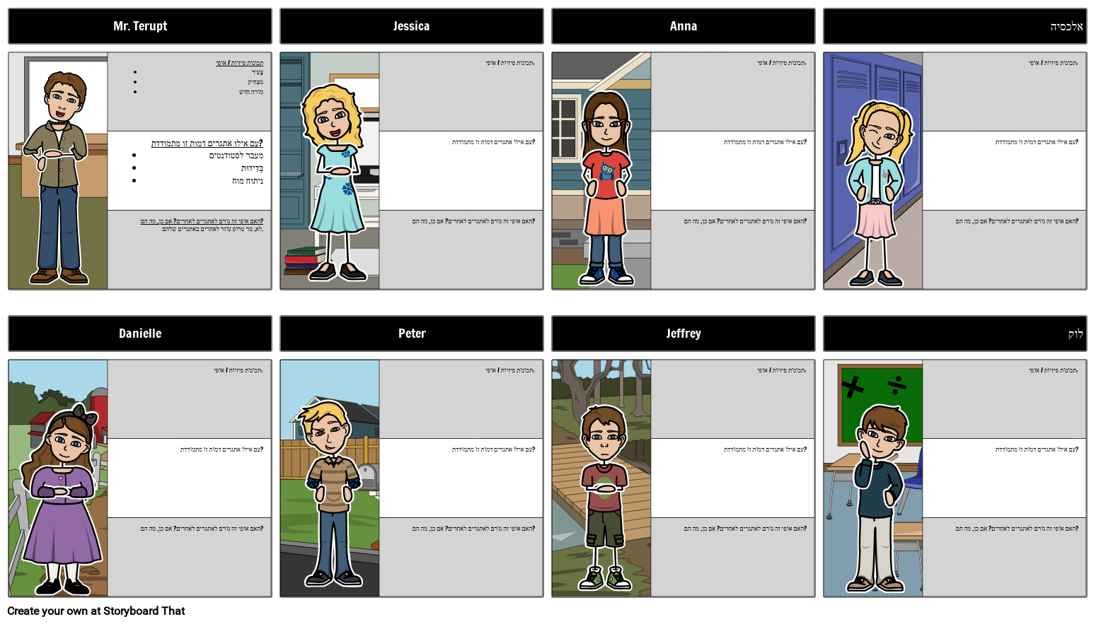 תכונות פיזיות / אופי: עם אילו אתגרים דמות זו מתמודדת? האם אופי זה גורם לאתגרים לאחרים? אם כן, מה הם?