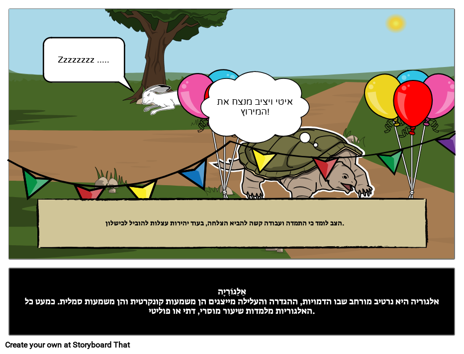 הצב לומד כי התמדה ועבודה קשה להביא הצלחה, בעוד יהירות עצלות להוביל לכישלון.
