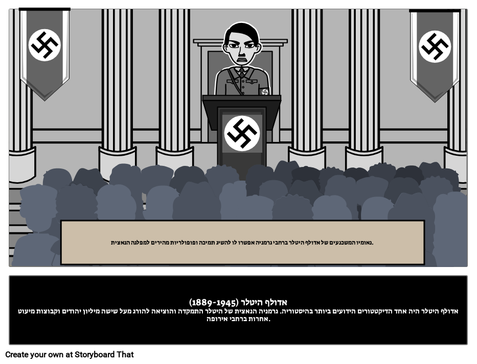 אדולף היטלר (1889-1945)אדולף היטלר היה אחד הדיקטטורים הידועים ביותר בהיסטוריה. גרמניה הנאצית של היטלר התמקדה והוציאה להורג מעל שישה מיליון יהודים וקבוצות מיעוט אחרות ברחבי אירופה.