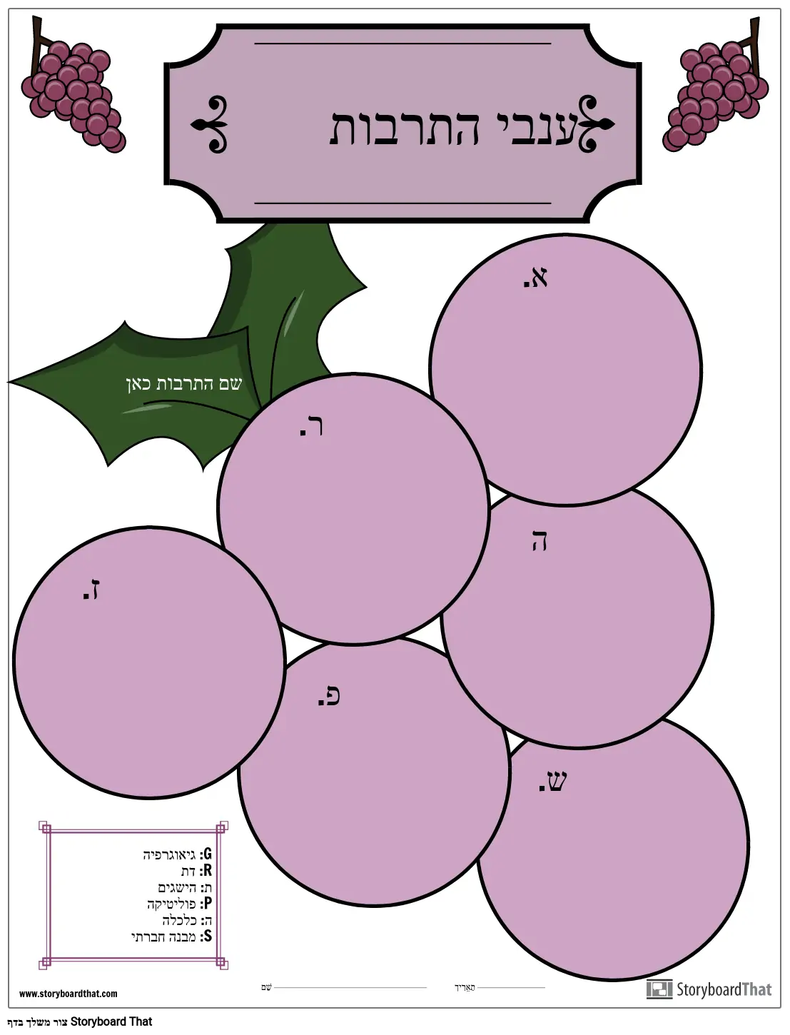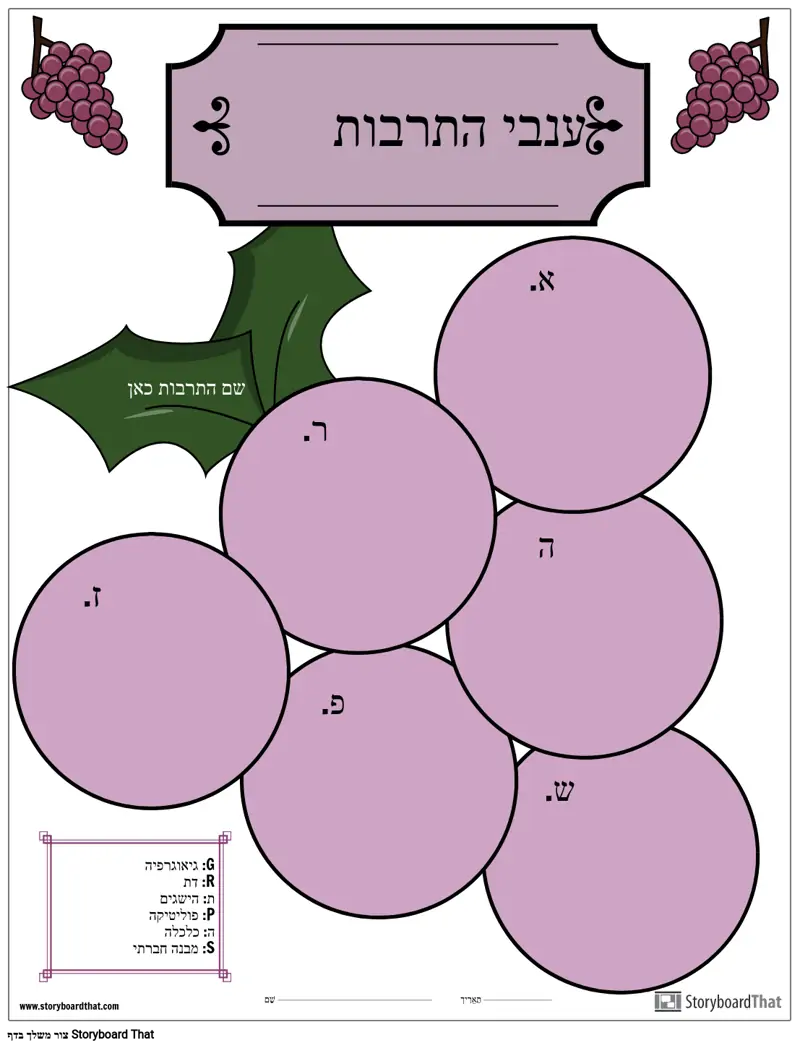 G: גיאוגרפיה R: דת ת: הישגים P: פוליטיקה ה: כלכלה S: מבנה חברתי