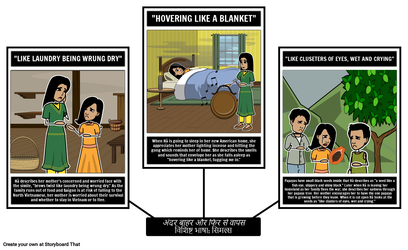 Hà describes her mother's concerned and worried face with the simile, "brows twist like laundry being wrung dry." As the family runs out of food and Saigon is at risk of falling to the North Vietnamese, her mother is worried about their survival and whether to stay in Vietnam or to flee.