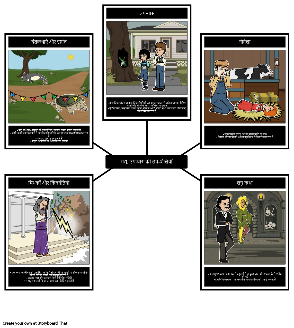 • उपन्यास से छोटा, अधिक सरल प्लॉट के साथ • विषयों और पात्रों को अधिक पूर्ण रूप से विकसित करता है
