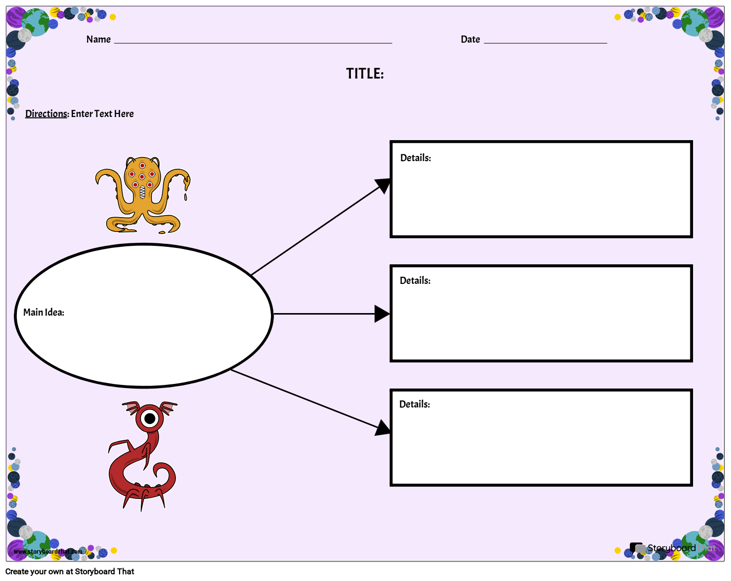 किसी भी विषय या असाइनमेंट के लिए अनुकूलन योग्य मुख्य विचार और विवरण वर्कशीट!