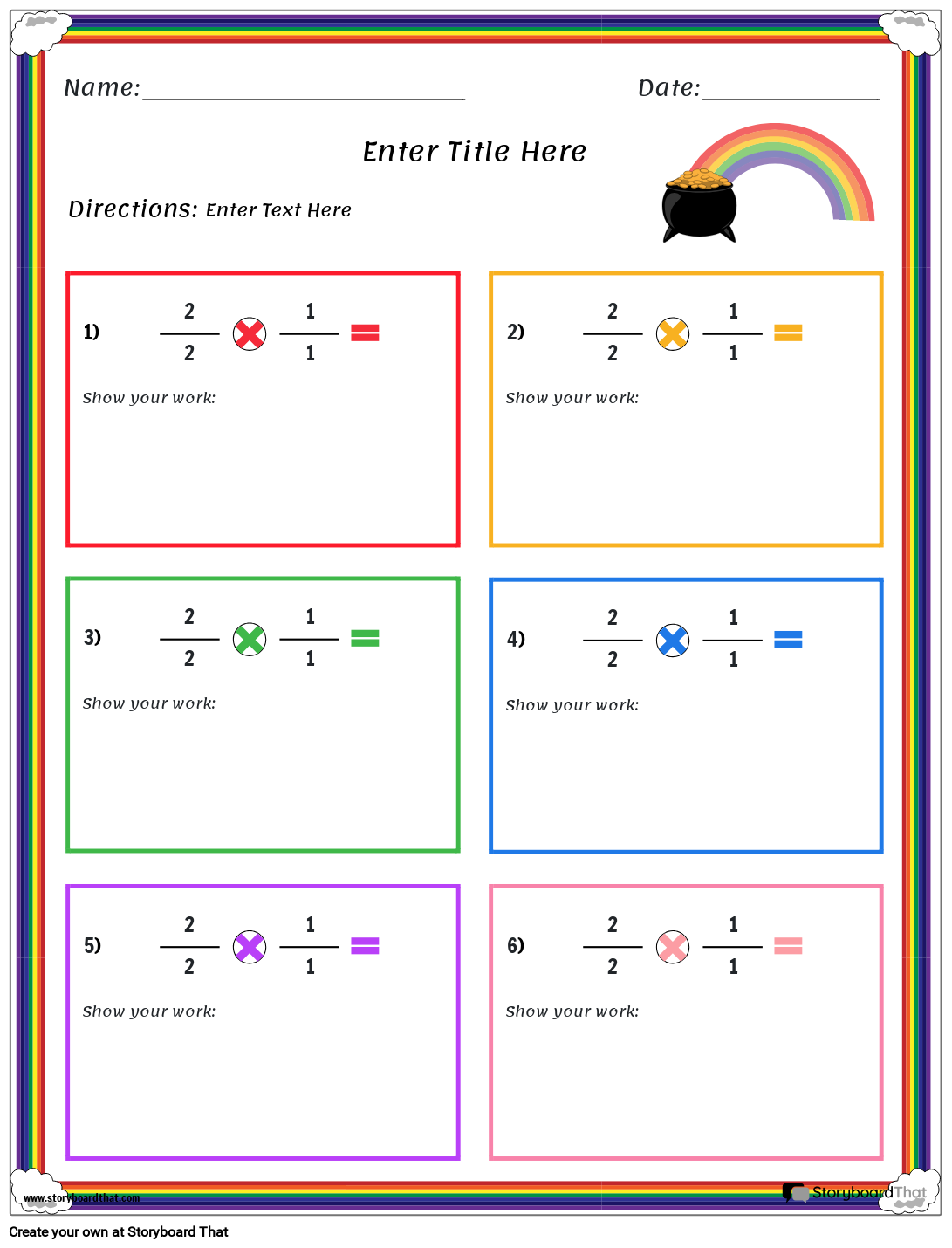 गणित की समस्याओं को हल करने के लिए शिक्षक या छात्र इस इंद्रधनुष थीम वाले गुणन कार्यपत्रक को संपादित कर सकते हैं! यह वर्कशीट पूरी तरह से अनुकूलन योग्य है और इसे मानक प्रिंटर पर डिजिटल रूप से उपयोग करने या प्रिंट आउट करने के लिए डिज़ाइन किया गया है।