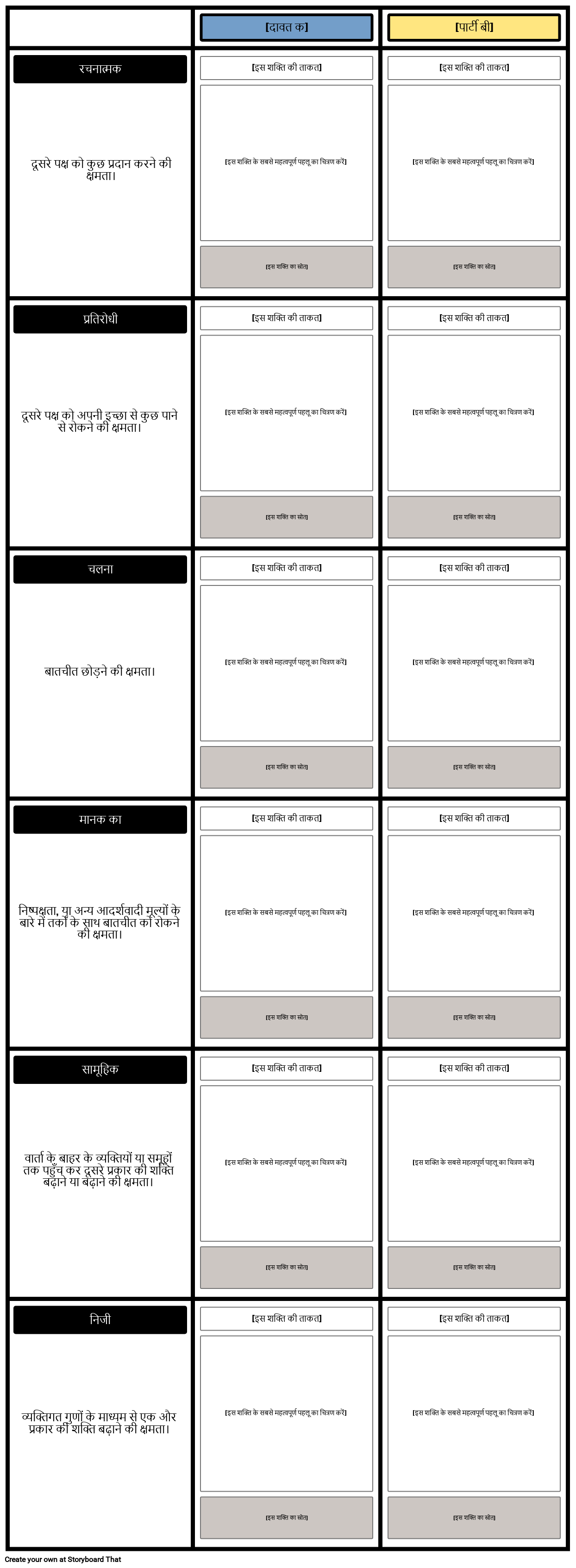 दो वार्ता दलों के एक शक्ति विश्लेषण प्रदर्शन के लिए एक टेम्पलेट