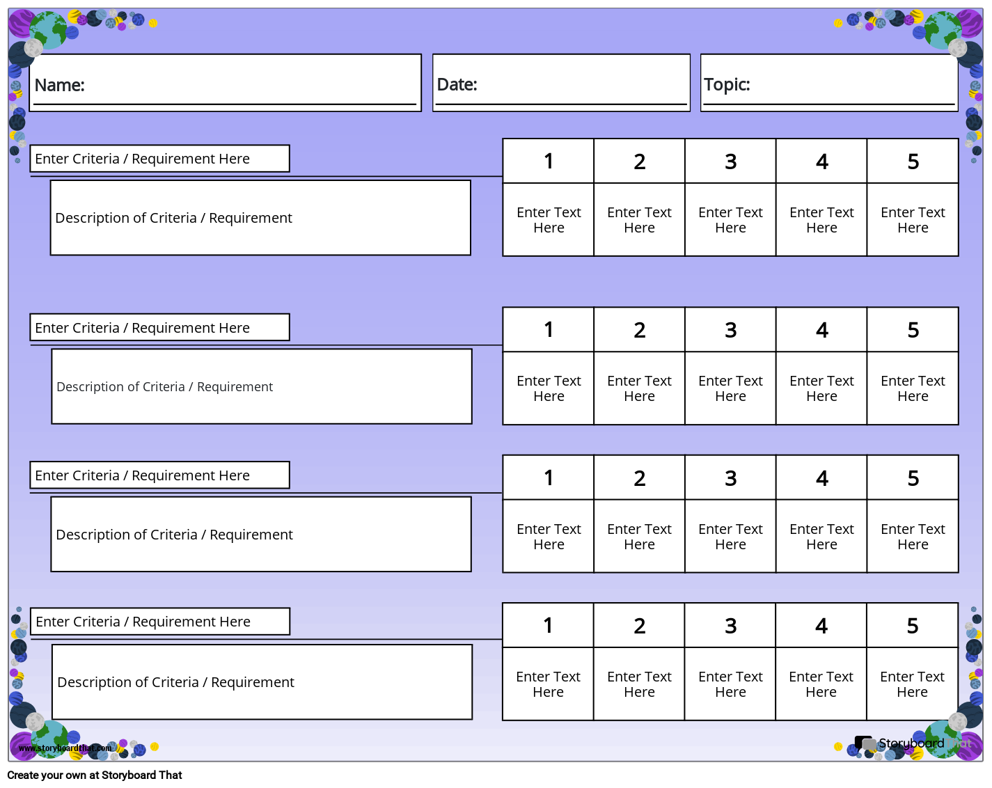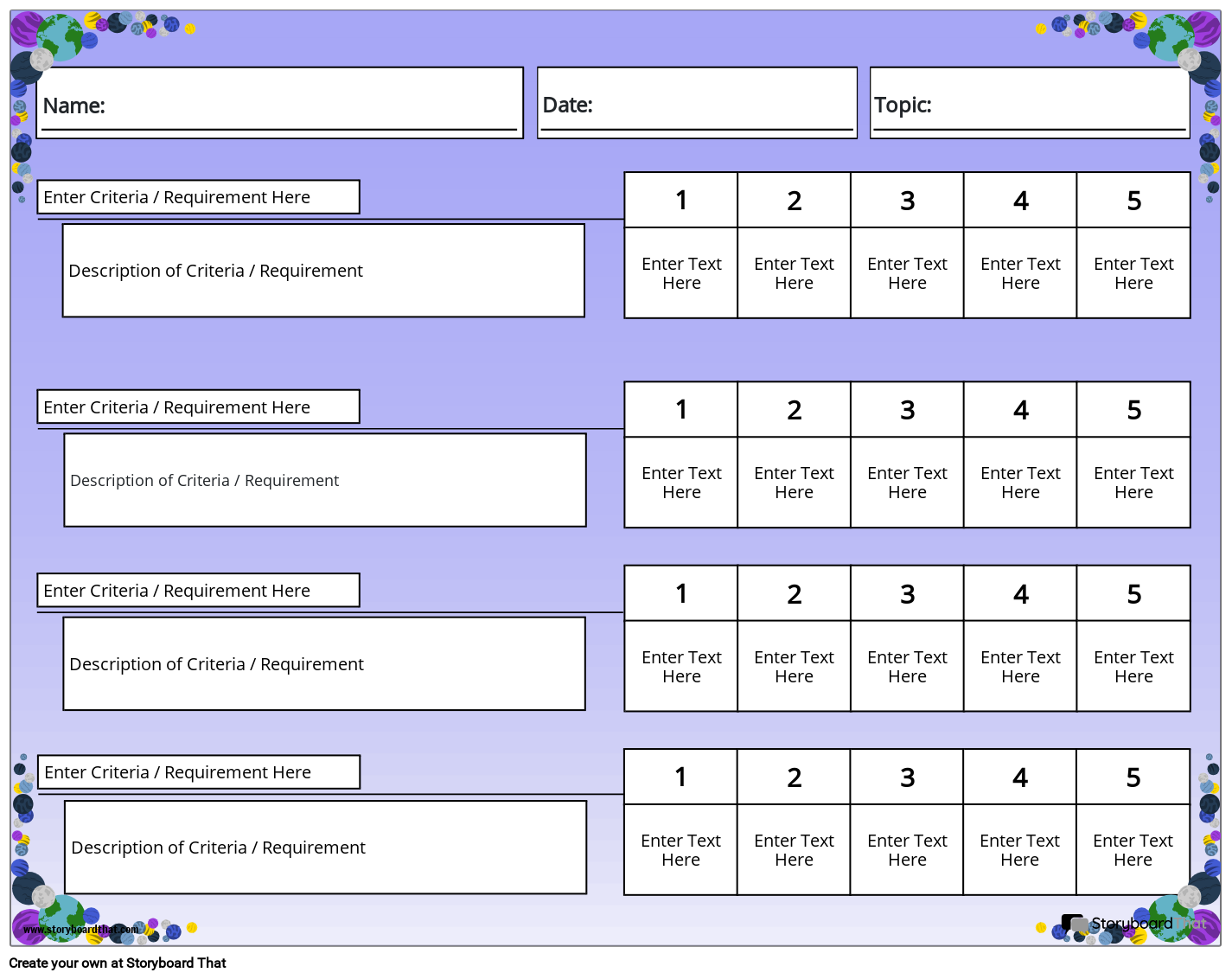 असाइनमेंट के लिए अपेक्षाओं को शामिल करने के लिए इस रूब्रिक वर्कशीट को कस्टमाइज़ करें! डिजिटल या मुद्रित रूप में इस्तेमाल किया जा सकता है। ग्रहों के साथ बैंगनी विषय।