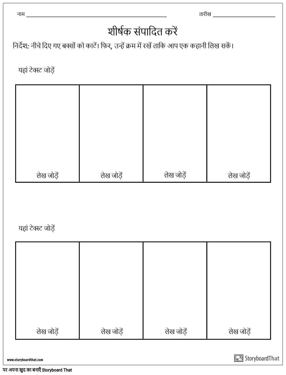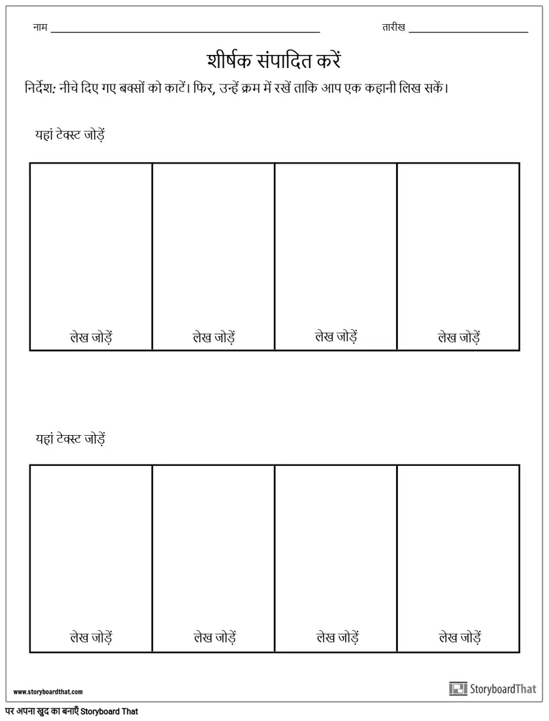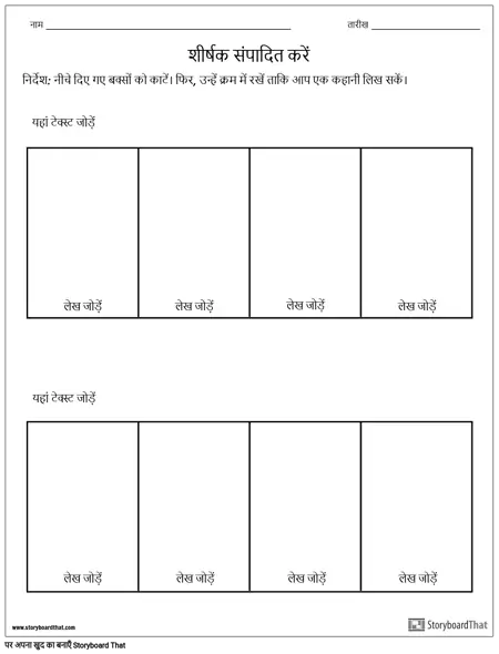 निर्देश: नीचे दिए गए बक्सों को काटें। फिर, उन्हें क्रम में रखें ताकि आप एक कहानी लिख सकें।