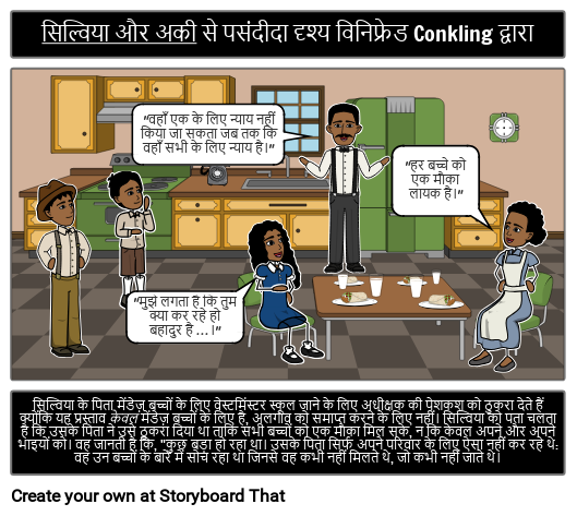 सिल्विया के पिता मेंडेज़ बच्चों के लिए वेस्टमिंस्टर स्कूल जाने के लिए अधीक्षक की पेशकश को ठुकरा देते हैं क्योंकि यह प्रस्ताव केवल मेंडेज़ बच्चों के लिए है, अलगाव को समाप्त करने के लिए नहीं। सिल्विया को पता चलता है कि उसके पिता ने उसे ठुकरा दिया था ताकि सभी बच्चों को एक मौका मिल सके, न कि केवल अपने और अपने भाइयों को। वह जानती है कि, "कुछ बड़ा हो रहा था। उसके पिता सिर्फ अपने परिवार के लिए ऐसा नहीं कर रहे थे: वह उन बच्चों के बारे में सोच रहा था जिनसे वह कभी नहीं मिलते थे, जो कभी नहीं जाते थे।
