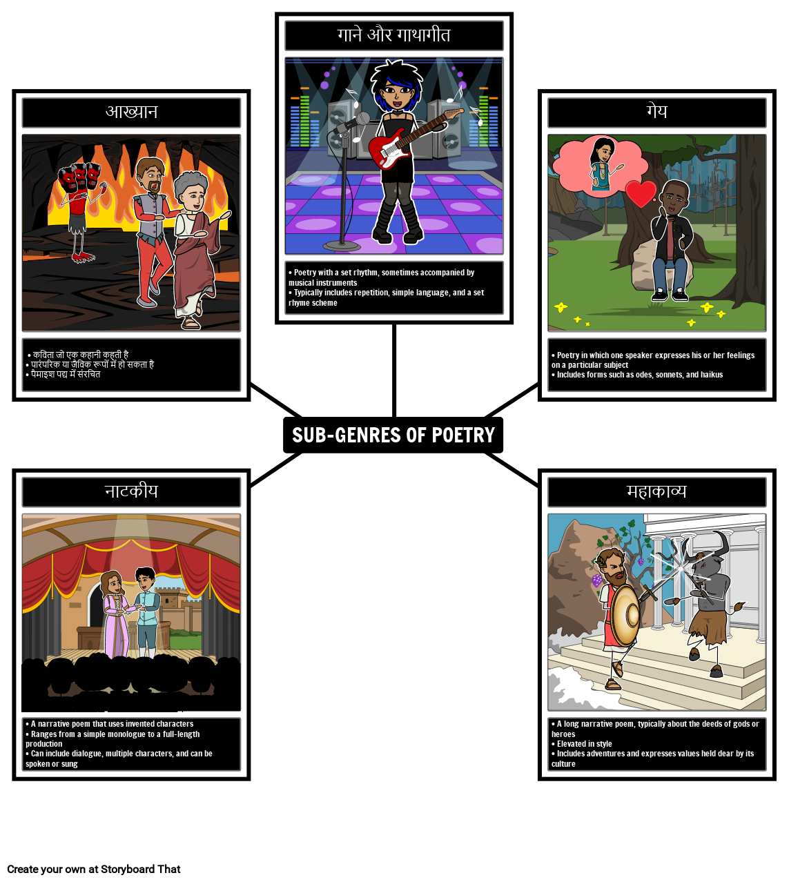 • कविता जो एक कहानी कहती है • पारंपरिक या जैविक रूपों में हो सकता है • पैमाइश पद्य में संरचित