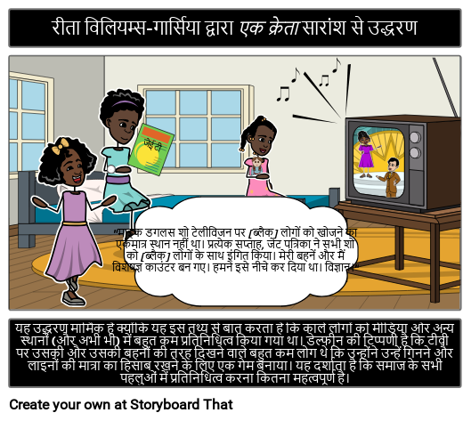 यह उद्धरण मार्मिक है क्योंकि यह इस तथ्य से बात करता है कि काले लोगों को मीडिया और अन्य स्थानों (और अभी भी) में बहुत कम प्रतिनिधित्व किया गया था। डेल्फीन की टिप्पणी है कि टीवी पर उसकी और उसकी बहनों की तरह दिखने वाले बहुत कम लोग थे कि उन्होंने उन्हें गिनने और लाइनों की मात्रा का हिसाब रखने के लिए एक गेम बनाया। यह दर्शाता है कि समाज के सभी पहलुओं में प्रतिनिधित्व करना कितना महत्वपूर्ण है।