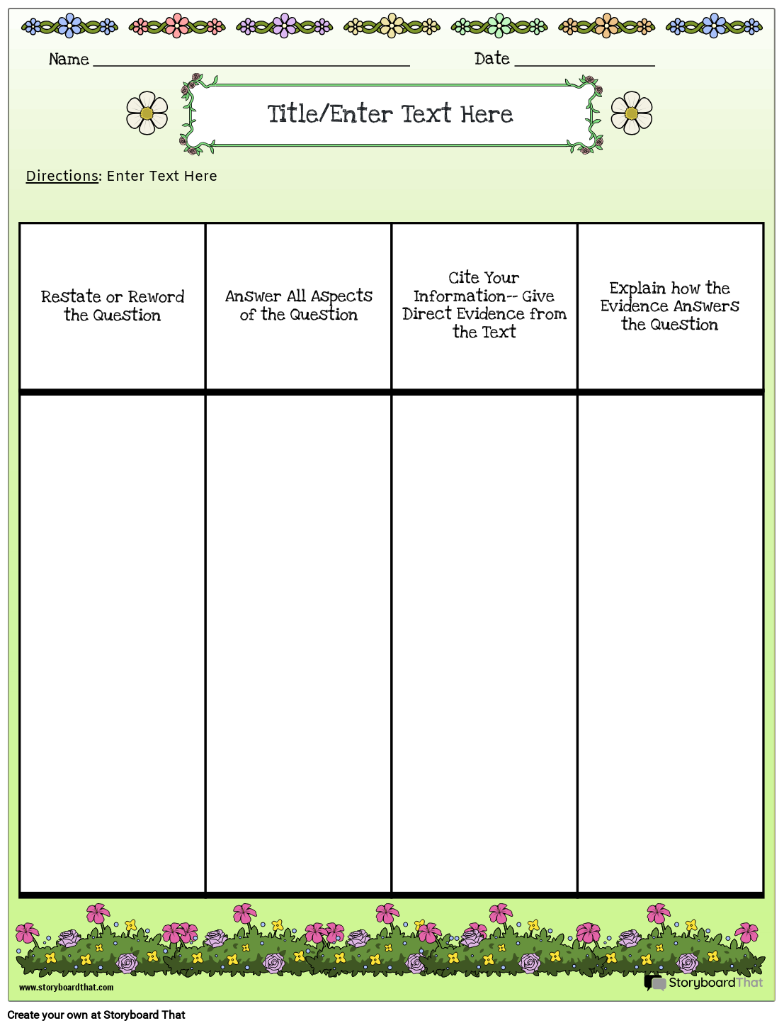 ओपन रिस्पांस वर्कशीट टेम्प्लेट | निबंधों के लिए कस्टम ओपन रिस्पांस वर्कशीट