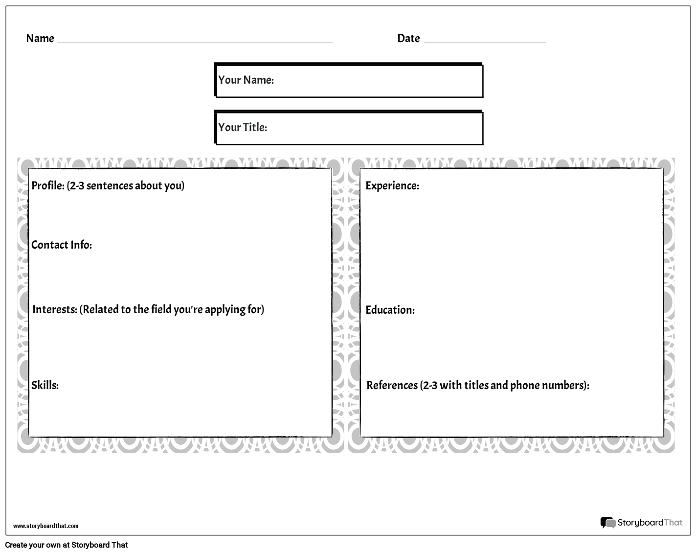 रिज्यूमे लिखने से पहले छात्रों को आवश्यक जानकारी संकलित करने में मदद करने के लिए वर्कशीट टेम्पलेट फिर से शुरू करें