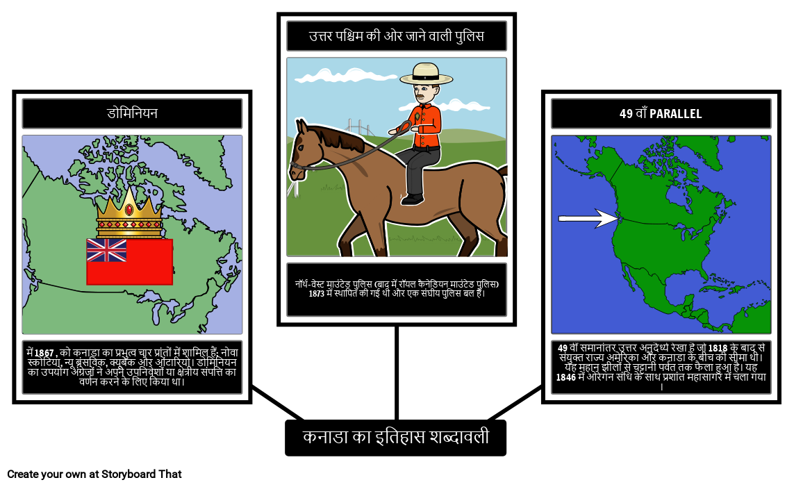 कनाडाई इतिहास से संबंधित प्रमुख शब्दों को परिभाषित और चित्रित करने के लिए एक मकड़ी का नक्शा बनाएं!