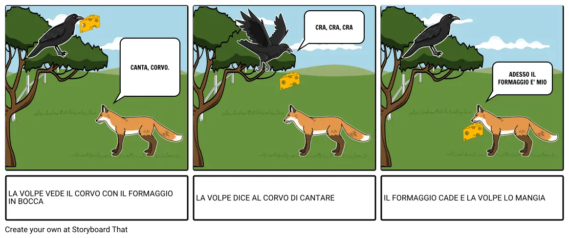 LA VOLPE VEDE IL CORVO CON IL FORMAGGIO IN BOCCA