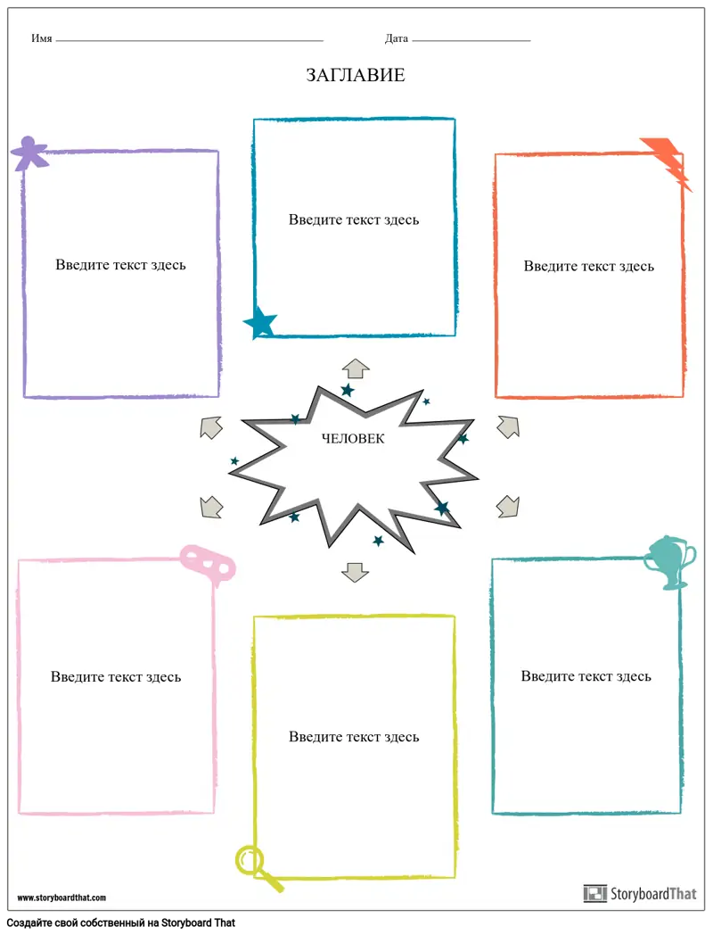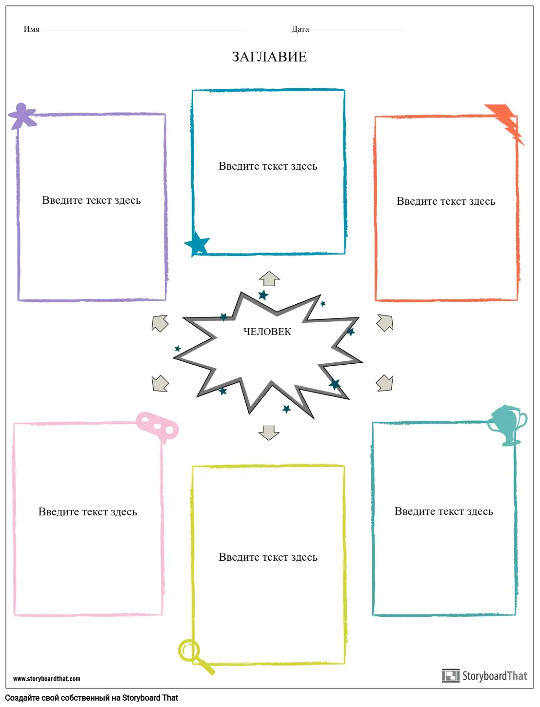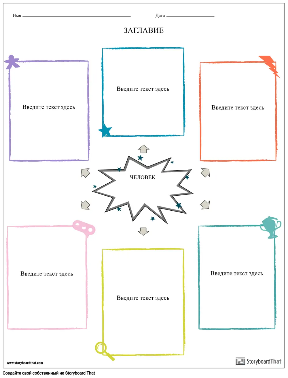 Используйте графический органайзер, чтобы создавать презентации биографий, плакаты и многое другое.