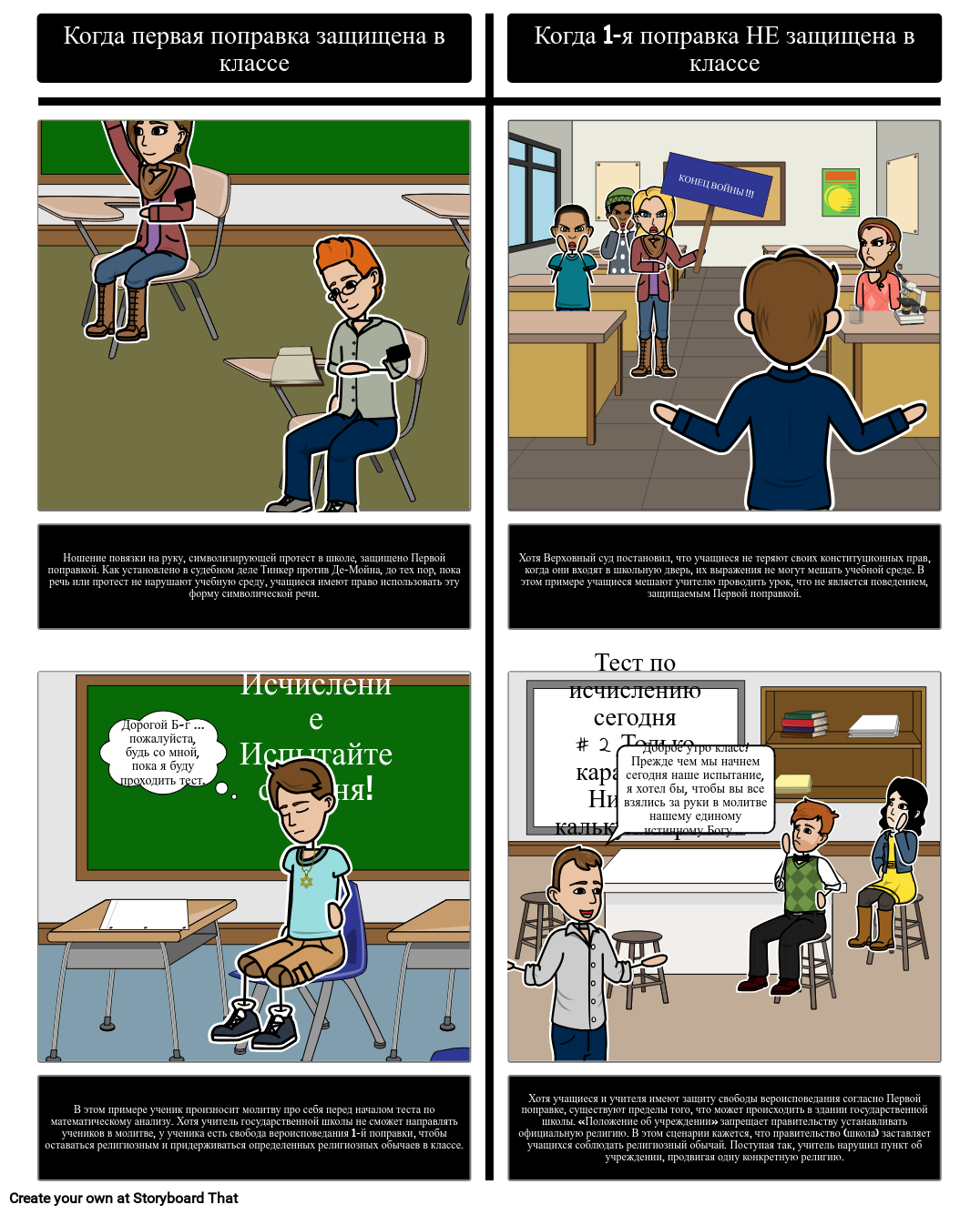 Попросите учащихся проиллюстрировать сценарии, в которых права учащихся в соответствии с Первой поправкой защищены в классе, а в других - нет.