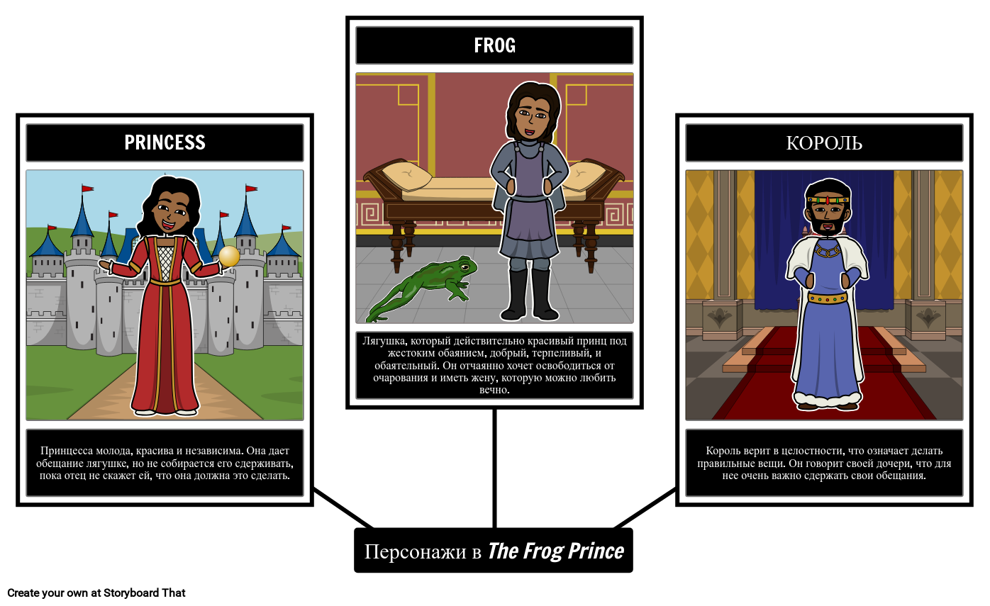 Создайте карту паука, чтобы описать главных героев истории Принца-лягушки!