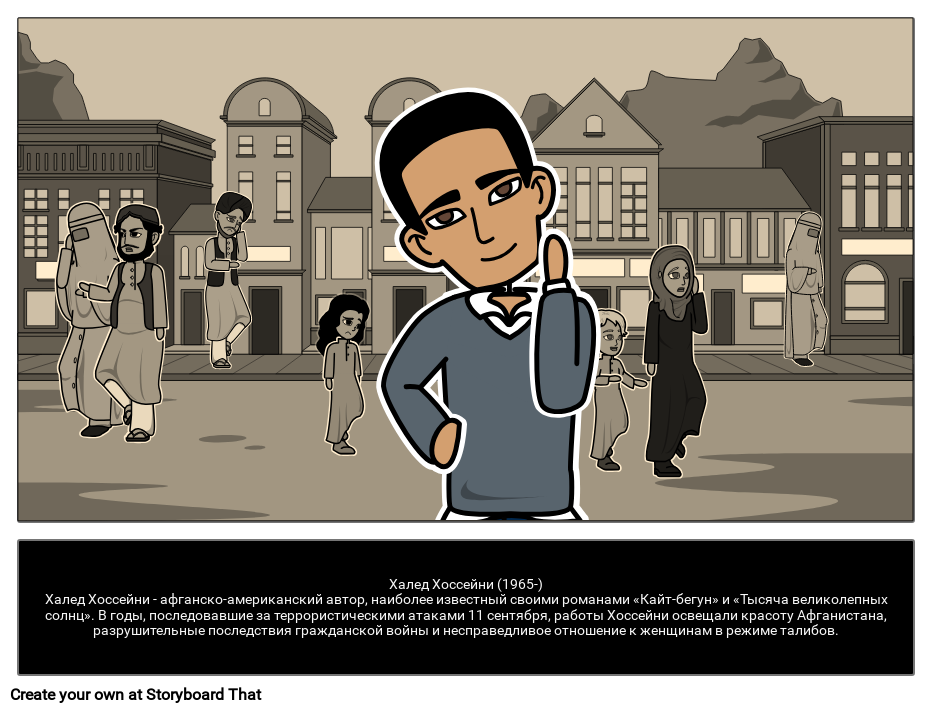 Халед Хоссейни (1965-)Халед Хоссейни - афганско-американский автор, наиболее известный своими романами «Кайт-бегун» и «Тысяча великолепных солнц». В годы, последовавшие за террористическими атаками 11 сентября, работы Хоссейни освещали красоту Афганистана, разрушительные последствия гражданской войны и несправедливое отношение к женщинам в режиме талибов.
