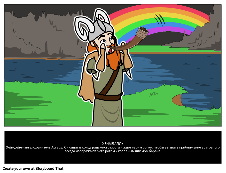 ХЕЙМДАЛЛЬХеймдейл - ангел-хранитель Асгард. Он сидит в конце радужного моста и ждет своим рогом, чтобы вызвать приближение врагов. Его всегда изображают с его рогом и головным шлемом барана.