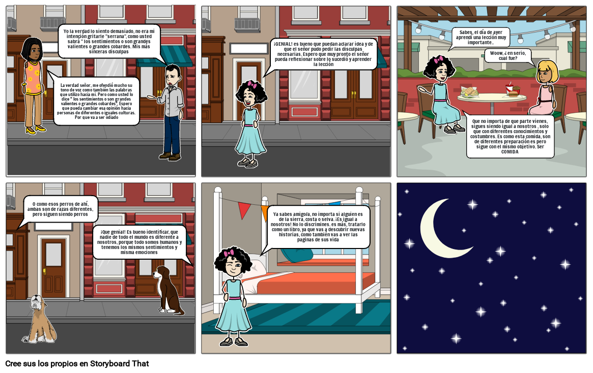Ya sabes amigo/a, no importa si alguien es de la sierra, costa o selva. ¡Es igual a nosotros! No lo discrimines. es más, tratarlo como un libro, ya que vas a descubrir nuevas historias, como también vas a ver las paginas de sus vida