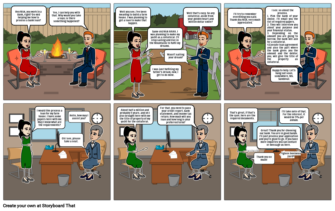 Hey Nick, you work in a bank, right? Do mid helping me how to process a bank loan?