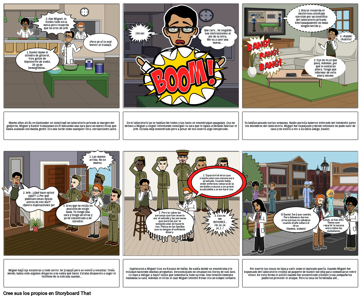 Es un cómic en el que unos científicos intentarán salvar a Santander de un ataque químico. Pasarán muchas pruebas y desafíos en los que con la mayor eficacia posible. Sentirán miedo, temor, esperanza, cansancio y felicidad.